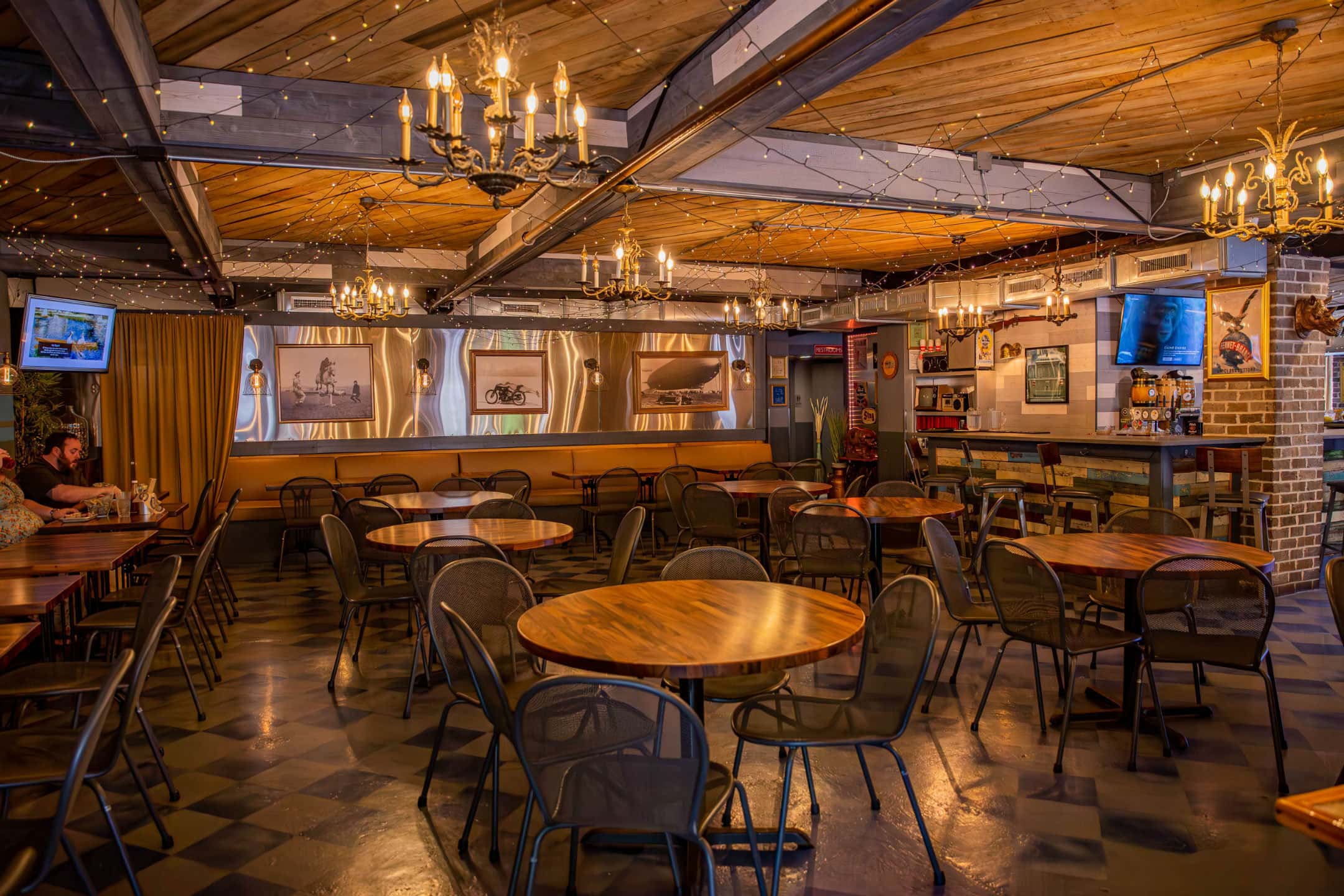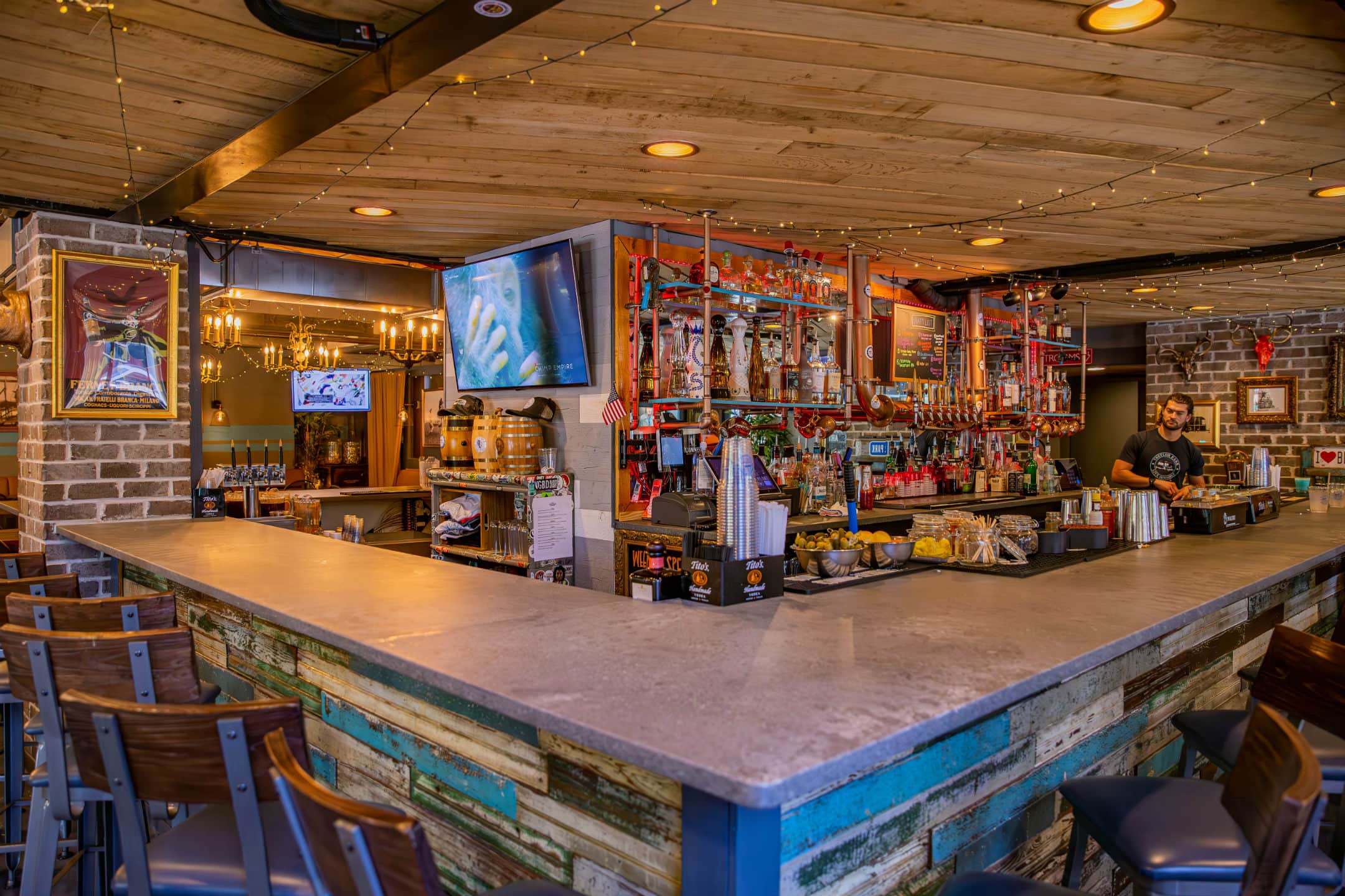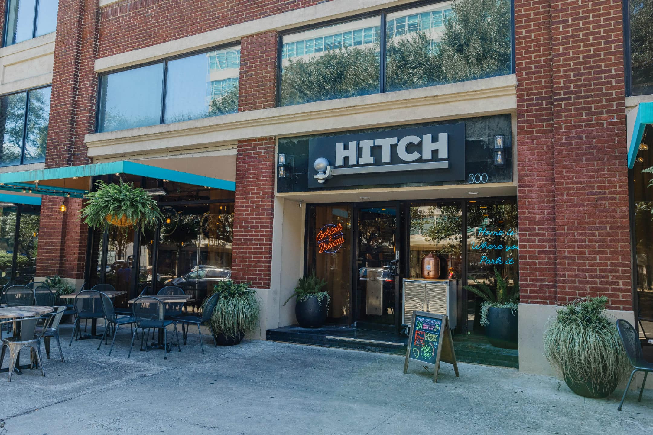 Experience Southern comfort like never before at Treylor Park Hitch in Savannah. You’ll love the cozy/cool vibes — they’re reminiscent of a whisky library — or maybe a chic, modern Saloon — complete with wood ceilings, strung lights, and copper accents. Sip on craft cocktails, sample our funky menu of unique Southern fare, and above all, make yourself at home! You’re going to want to stay awhile.
